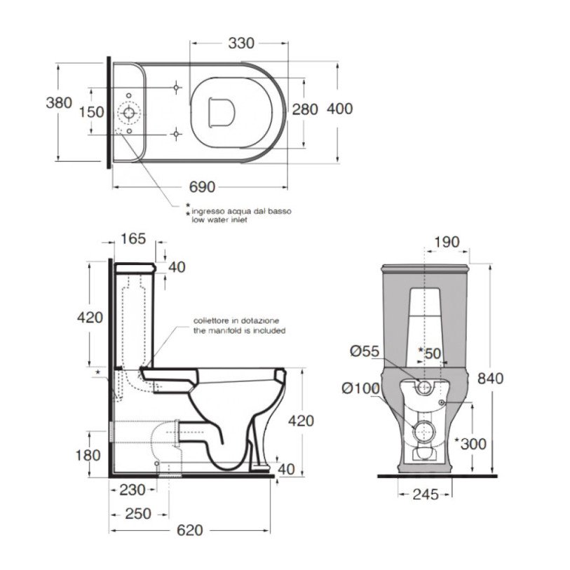 | Мінімальний об‘єм води для омивання чаші, л | 3 |