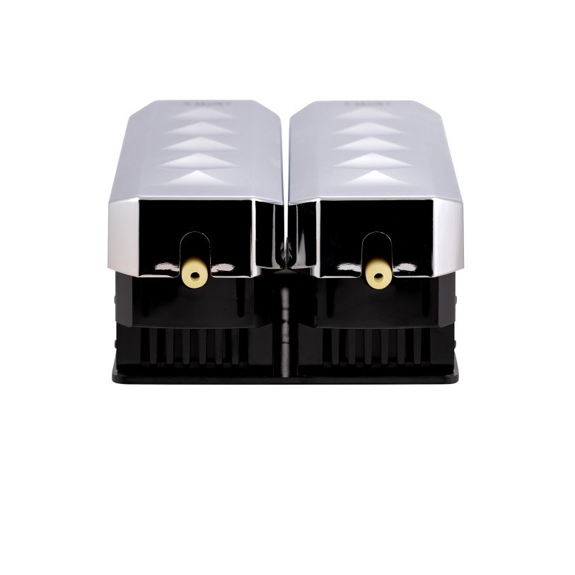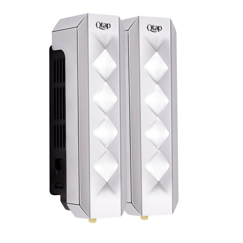 Подвійний диспенсер для рідкого мила Qtap Davcovac mydla DM350CP2 виготовлено з пластика з хромованою поверхнею. Отвори з боків допоможуть контролювати залишок рідкого мила. Зручний натискний механізм управління і простота наповнення резервуара є незаперечними перевагами виробу. Завдяки настінному монтажу виріб не займає багато місця і може бути розміщений в будь-якому зручному місці санвузла.