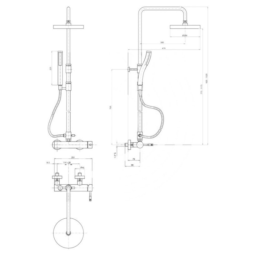 | Висота душової стійки, мм | 920-1320 |