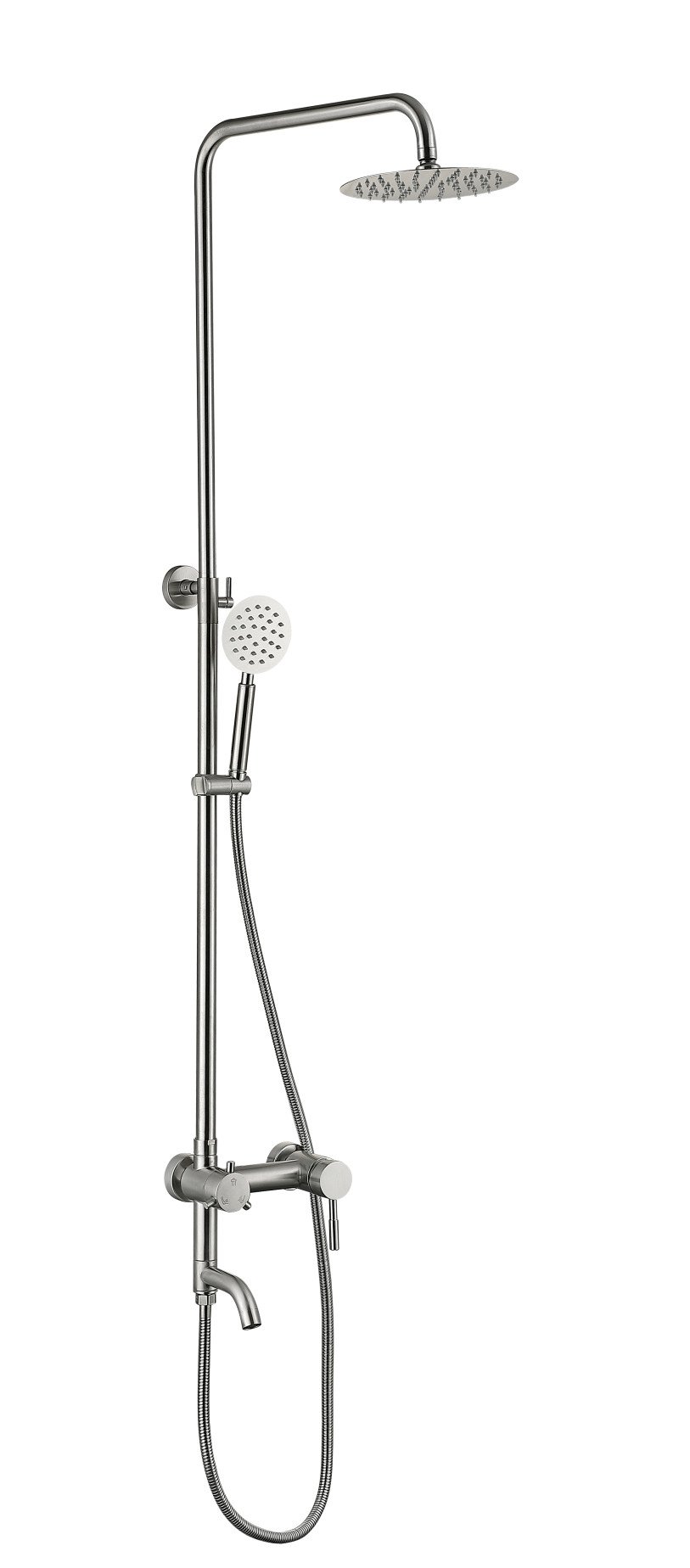 | Комплектація | Змішувач, кронштейн для верхнього душу, лійка для верхнього душу, кронштейн для ручного душу, лійка для ручного душу, душовий шланг, душова стійка, кріплення. |