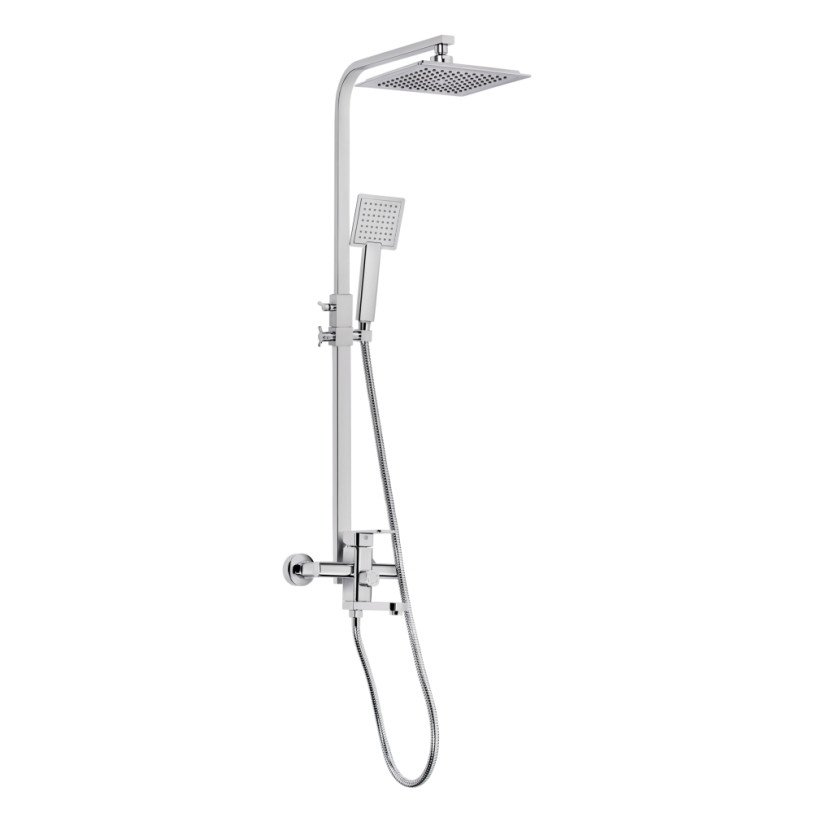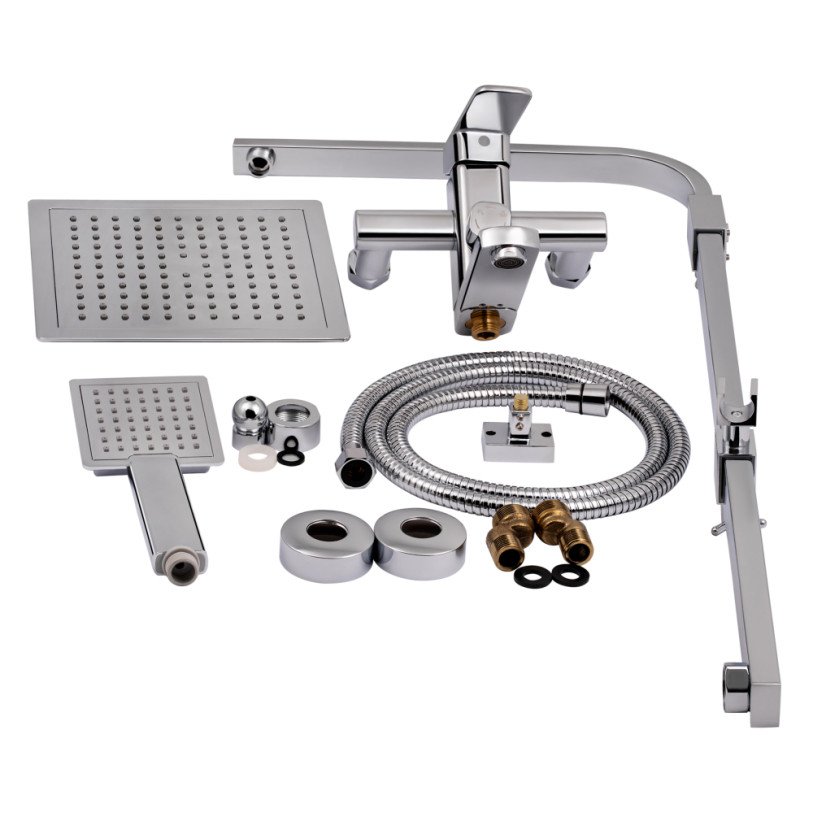 | Комплектація | Змішувач, кронштейн для верхнього душу, лійка для верхнього душу, кронштейн для ручного душу, лійка для ручного душу, душовий шланг, душова стійка, кріпильні деталі. |