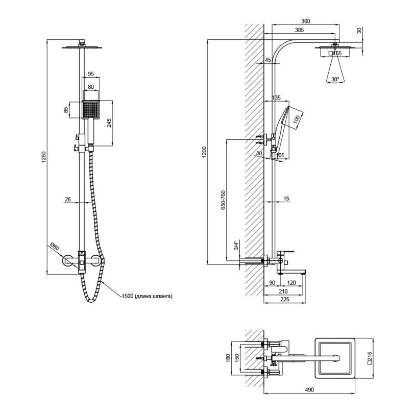 | Висота душової стійки, мм | 1200 |