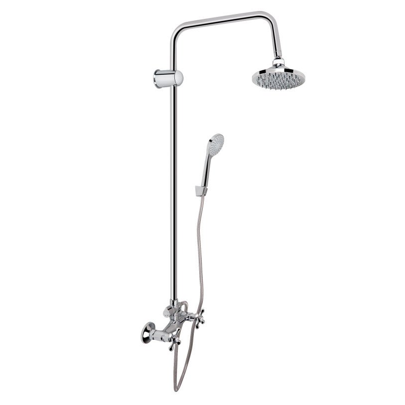 | Комплектація | Змішувач, кронштейн для верхнього душу, лійка для верхнього душу, кронштейн для ручного душу, лійка для ручного душу, душовий шланг, душова стійка, кріпильні деталі. |