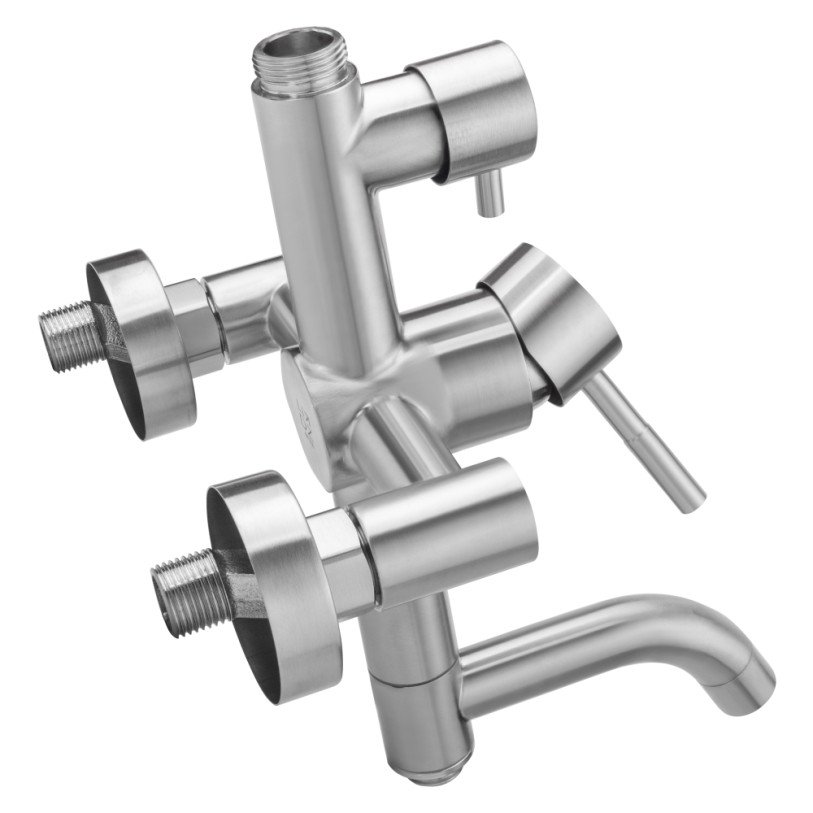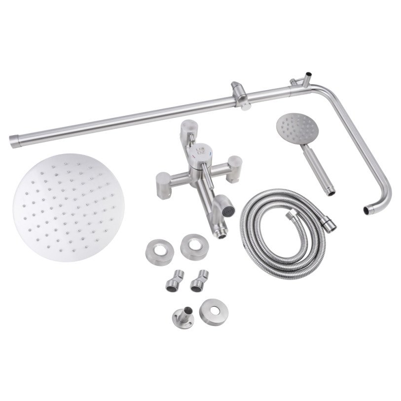 | Комплектація | Змішувач, кронштейн для верхнього душу, лійка для верхнього душу, кронштейн для ручного душу, лійка для ручного душу, душовий шланг, душова стійка, кріпильні деталі. |