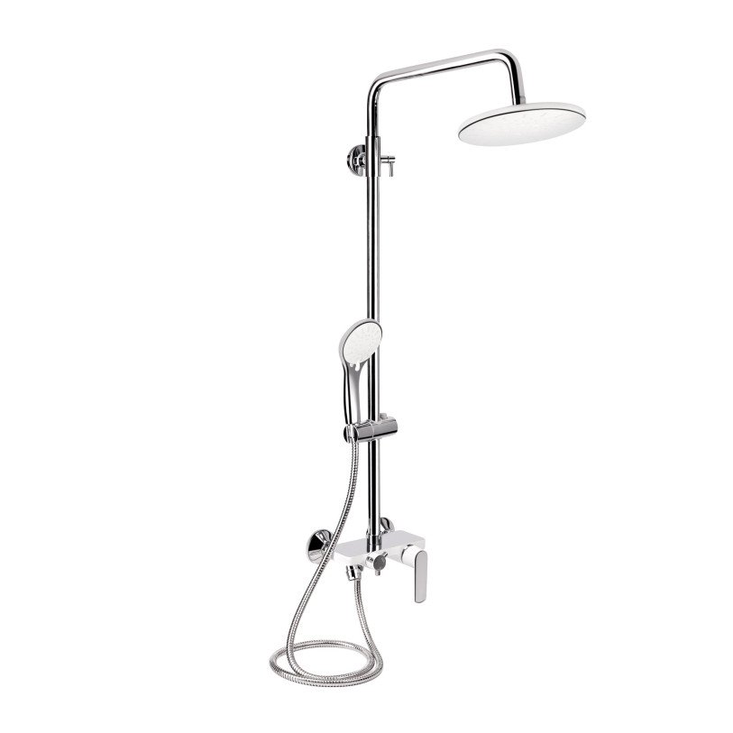 | Комплектація | Змішувач, кронштейн для верхнього душу, лійка для верхнього душу, кронштейн для ручного душу, лійка для ручного душу, душовий шланг, душова стійка, полиця, кріпильні деталі. |