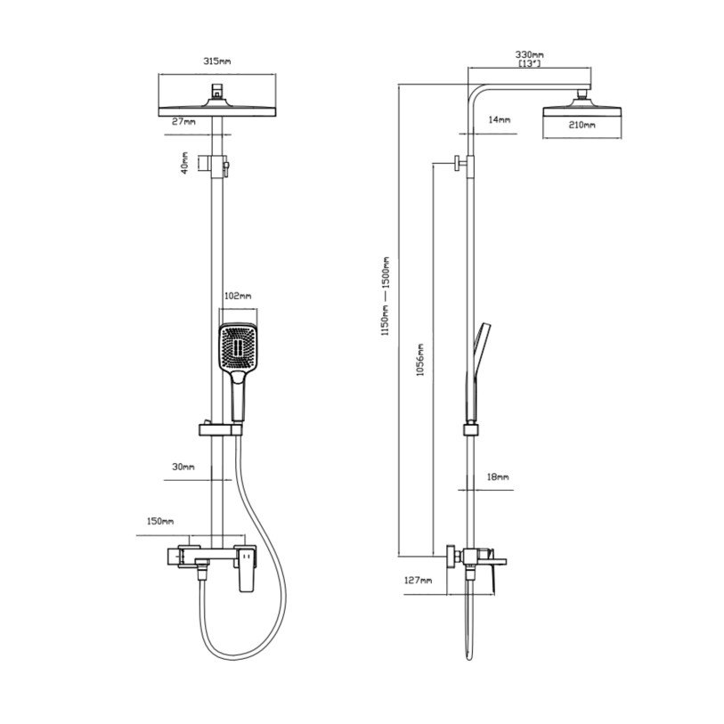 | Висота душової стійки, мм | 1600 |