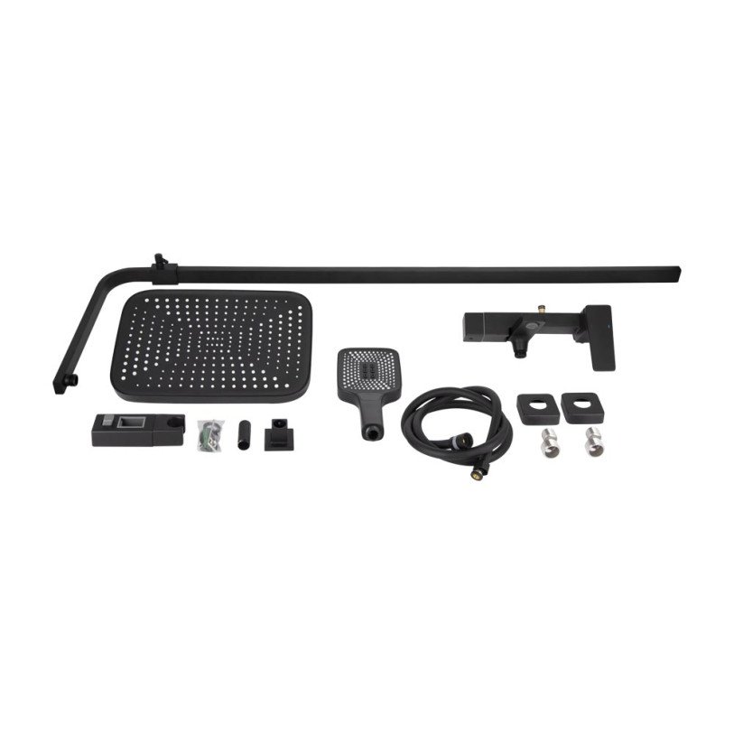 | Комплектація | Змішувач, кронштейн для верхнього душу, лійка для верхнього душу, кронштейн для ручного душу, лійка для ручного душу, душовий шланг, шлангове з'єднання, кріплення. |
