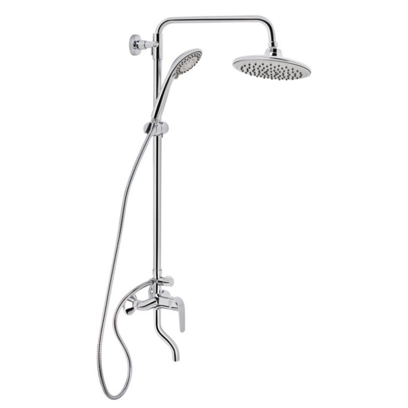 | Комплектація | Змішувач, кронштейн для верхнього душу, лійка для верхнього душу, кронштейн для ручного душу, лійка для ручного душу, душовий шланг, душова стійка, кріпильні деталі. |