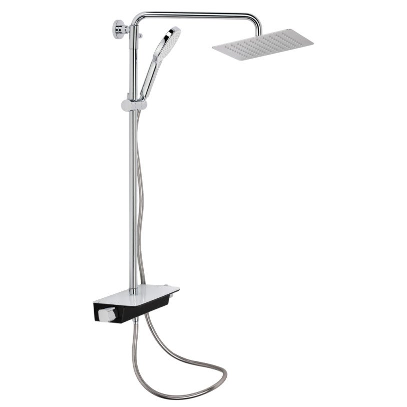 | Комплектація | Змішувач, кронштейн для верхнього душу, лійка для верхнього душу, кронштейн для ручного душу, лійка для ручного душу, душовий шланг, душова стійка, рівень, кріпильні деталі. |