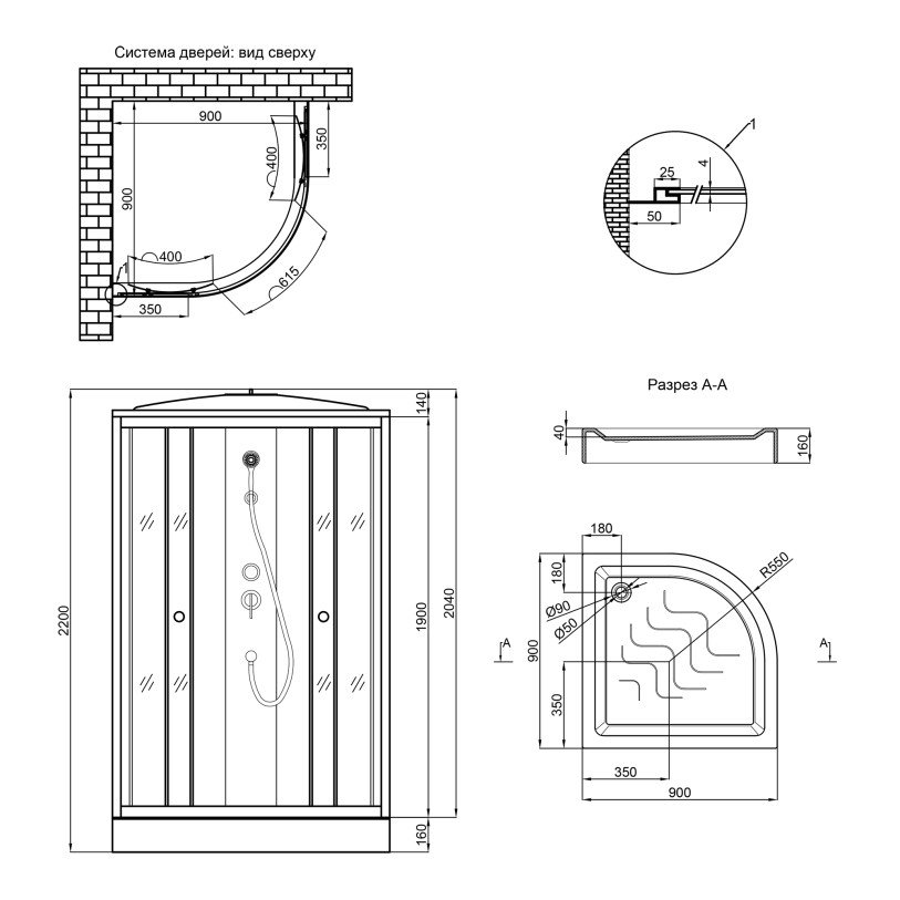 | Панель до піддона | Суцільнолита з піддоном |
