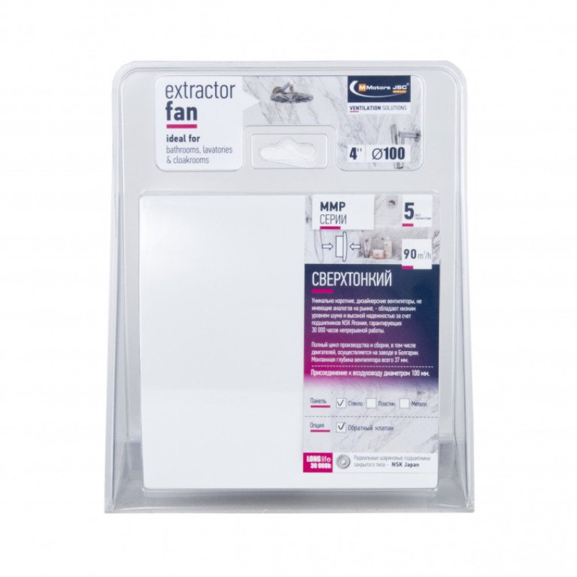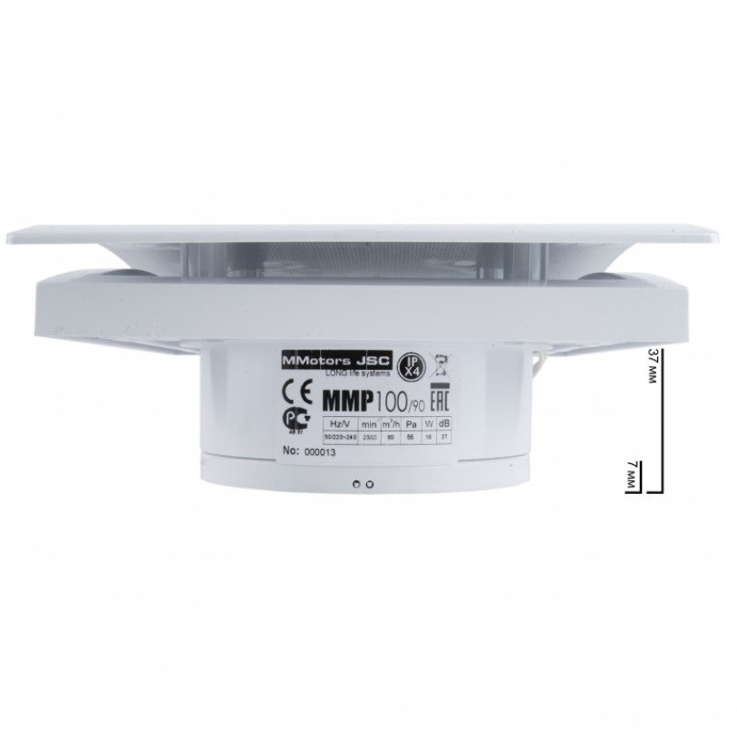 Дизайнерський надтонкий витяжний вентилятор MMP 100, 90 м3/год, пластик, білий