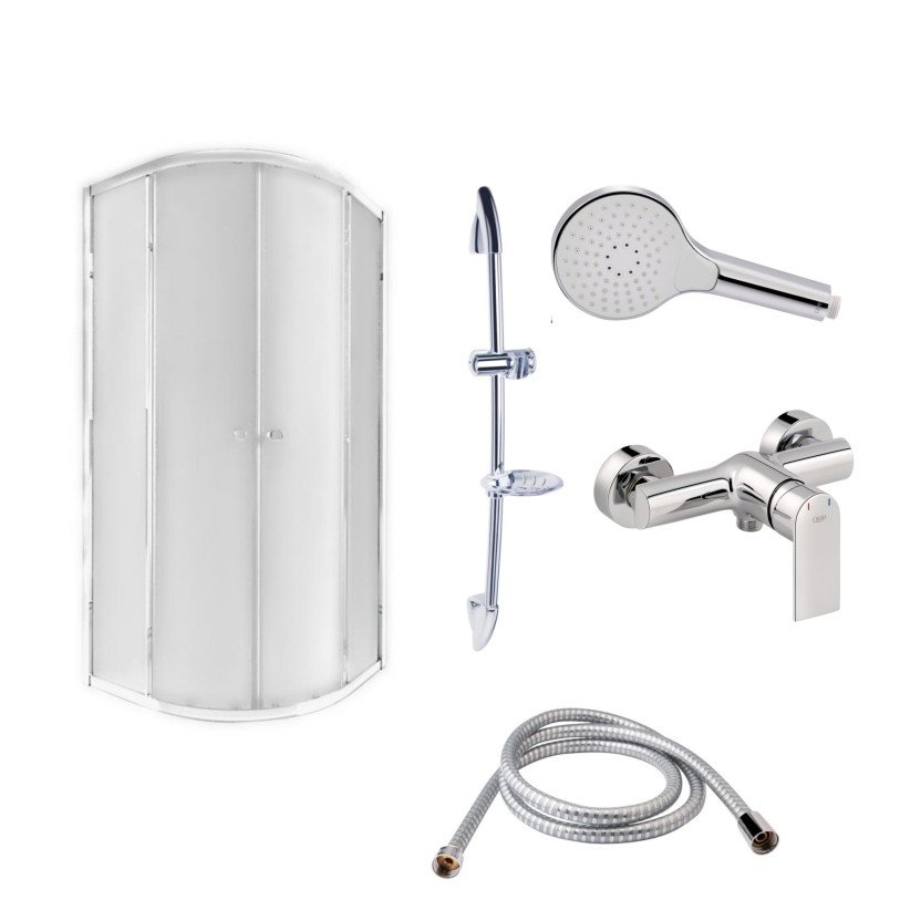 Готове рішення Qtap 10: Душ. кабіна півкругла, 90x90 + Змішувач для душу + Стійка + Шланг + Лійка