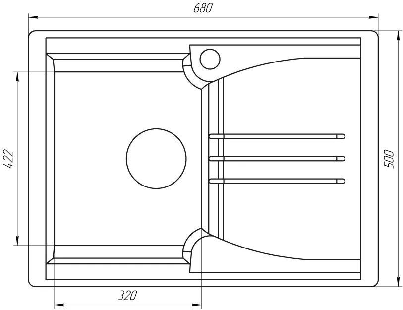 | Габарити чаші 1 (ВхШхД), мм | 422x320 мм |