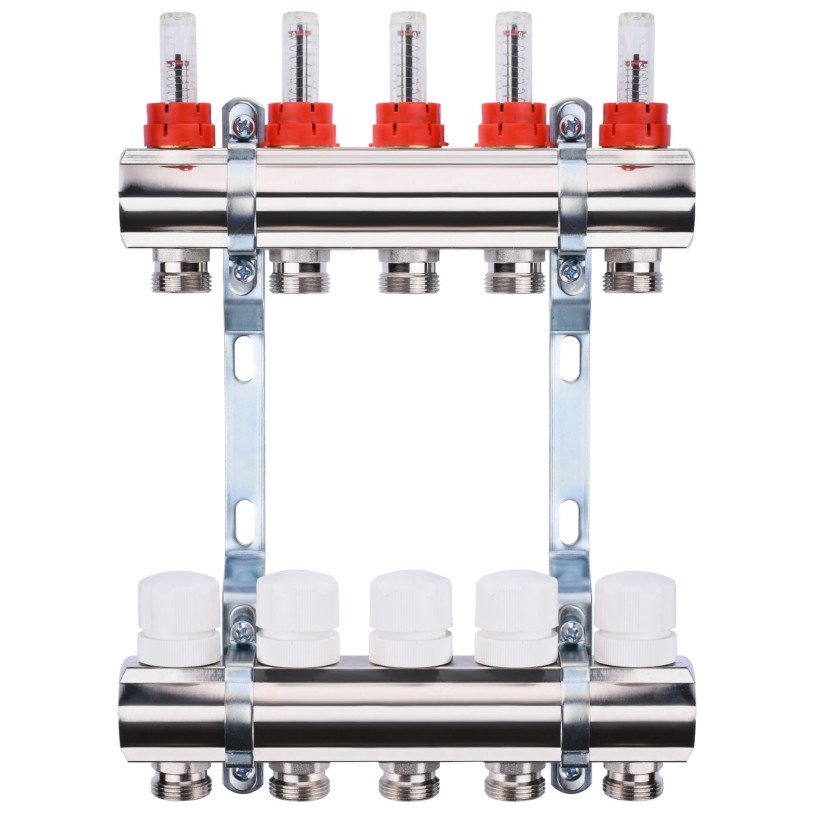 Колектор з вимірювачем витрат, регуляторами та кріпленням ECO 001A 1"x5