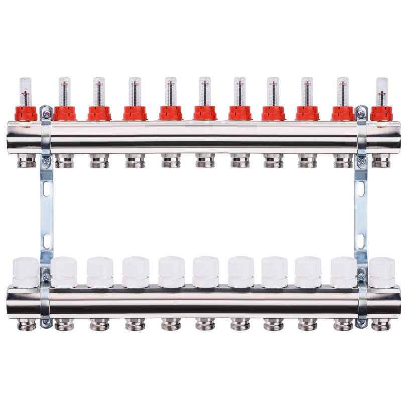 Колектор з вимірювачем витрат, регуляторами та кріпленням ECO 001A 1"x11