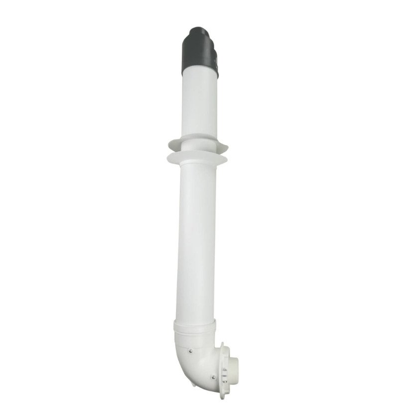 Комплект коаксіальний для конденсаційного котла Sime 810 мм, 60х100 складається з горизонтальної кінцевої ділянки газоходу та кутової деталі, яку під‘єднують безпосередньо до котла. Разом з коліном, що входять в комплектацію, максимальна довжина трубопроводу не повинна перевищувати 4,6 метра. При монтажі можна використовувати подовження (фабричний код 8086950) та додатковий вигин (8095850).