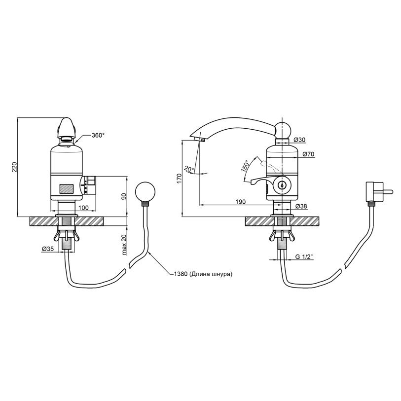 Кран для кухні проточний Lidz (WHI) 95 00 057 виготовлений з нержавіючої сталі. Призначений для швидкого нагріву проточної води для побутових цілей. Підмикається до магістралі холодного водопостачання за допомогою гнучкого шланга діаметром 1/2 "з тиском від 0.04 до 0.5 МПа і побутової електричної мережі 220 В, 50 Гц.