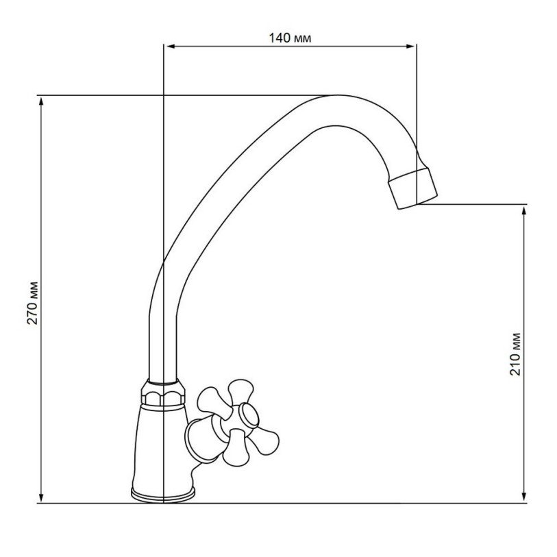 Кран для кухні GF (CRM)S-23-269F виготовлений з силуміну. Завдяки глянсовому хромованому покриттю має оригінальний зовнішній вигляд. Виконаний в класичному стилі, з вентильною ручкою для регулювання напору холодної води.