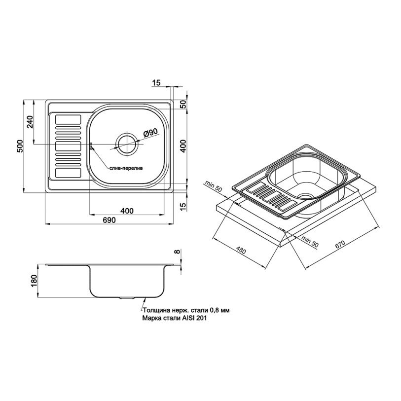 Мийка Imperial 6950 Satin виготовлена з високоякісної нержавіючої сталі харчової марки, тому виріб прослужить довгі роки. Також варто відзначити винятковий дизайн, який прикрасить будь-яку кухню. Відмінна якість та дизайн мийки задовольнять найвибагливі побажання й створять затишок у вашому домі! Мийка виконана з робочою чашею, ребристим крилом для сушіння посуду та розморожування продуктів. Монтується урізним способом в отвір в стільниці. Поверхня - матова, гладка, швидко миється.