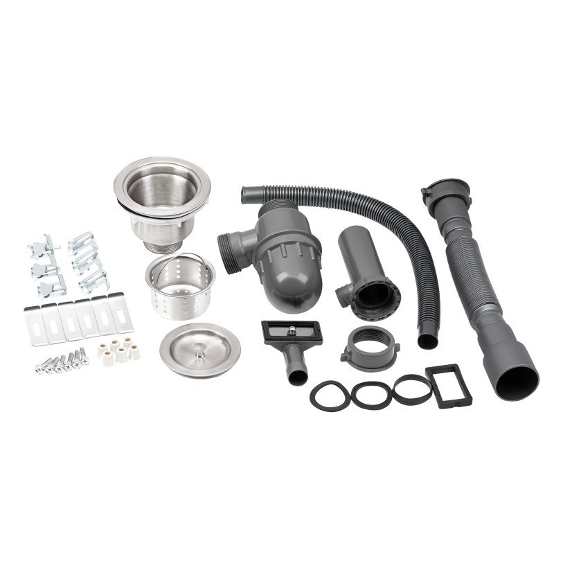 | Комплектація | Мийка, сифон, зливник-перелив, кошиковий вентиль, омивач для чаш, зливна дошка, гнучкий підвід, кріпильні деталі. |