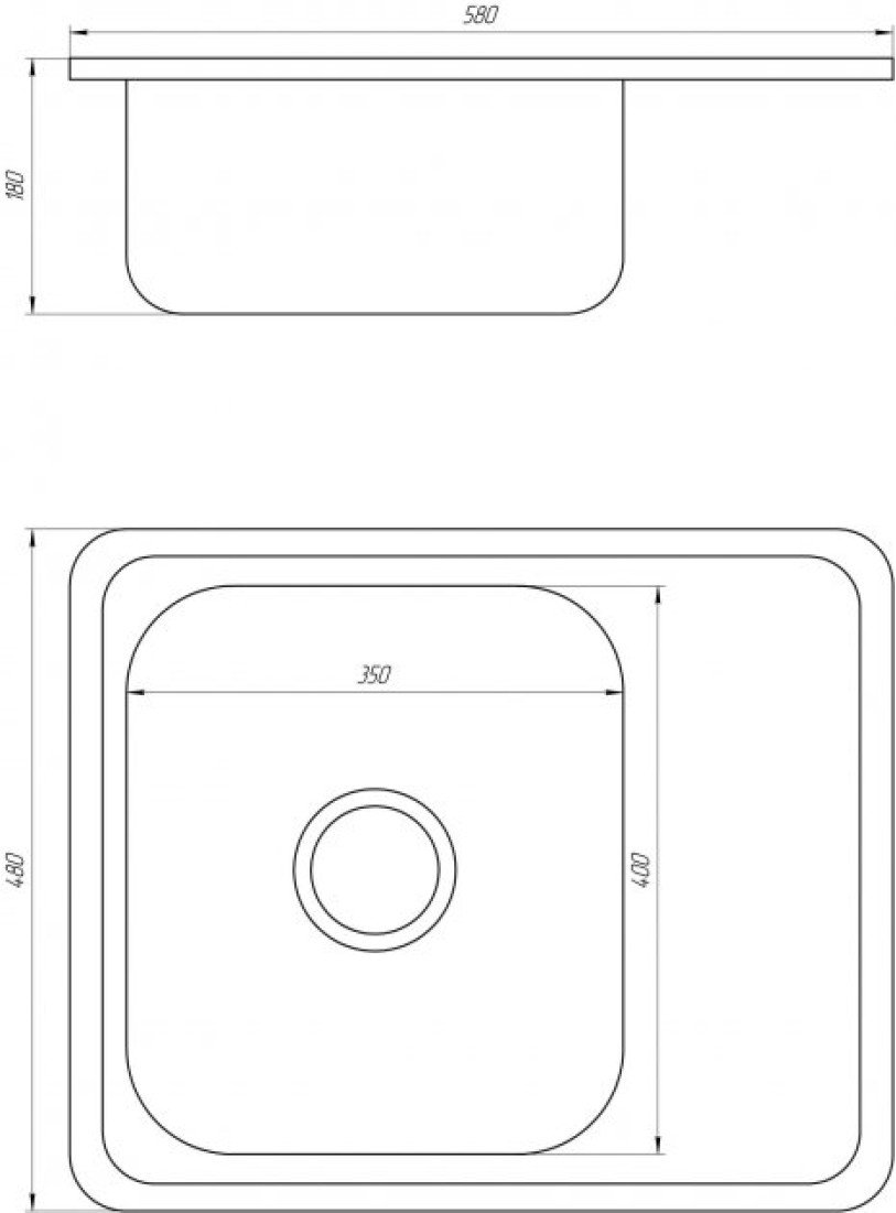 MR 5848 Мийка прямокутна з полицею, врізна 580х480х180 Polish