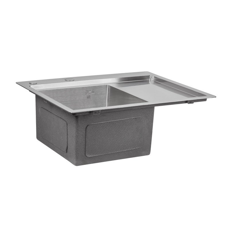 Набір 2 в 1 Lidz кухонна мийка H6350L Brush 3.0/0.8 мм + дозатор для миючого засобу - комплексне вирішить проблему облаштування мийної зони. Набір включає в себе стильну прямокутну кухонну мийку з крилом, виготовлену з міцної нержавіючої сталі і дозатор для миючого засобу. Інтегрована мийка має три варіанти встановлення - врівень зі стільницею, над стільницею (аналогічно урізним мийкам) і під нею.