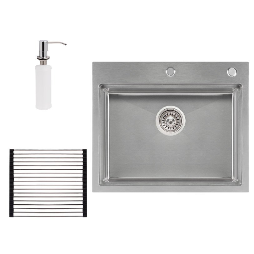 Набір 3 в 1 Qtap кухонна мийка DH6050 3.0/1.2 мм Satin + сушарка + дозатор для миючого засобу