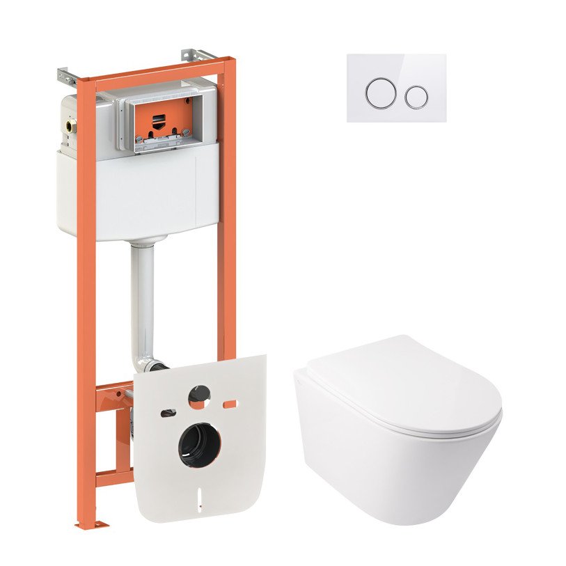 Набір Qtap інсталяція 4 в 1 з панеллю змиву Nest (QT0133M425 + QT0111M11V1114W) + унітаз з сидінням Swan QT16335178W