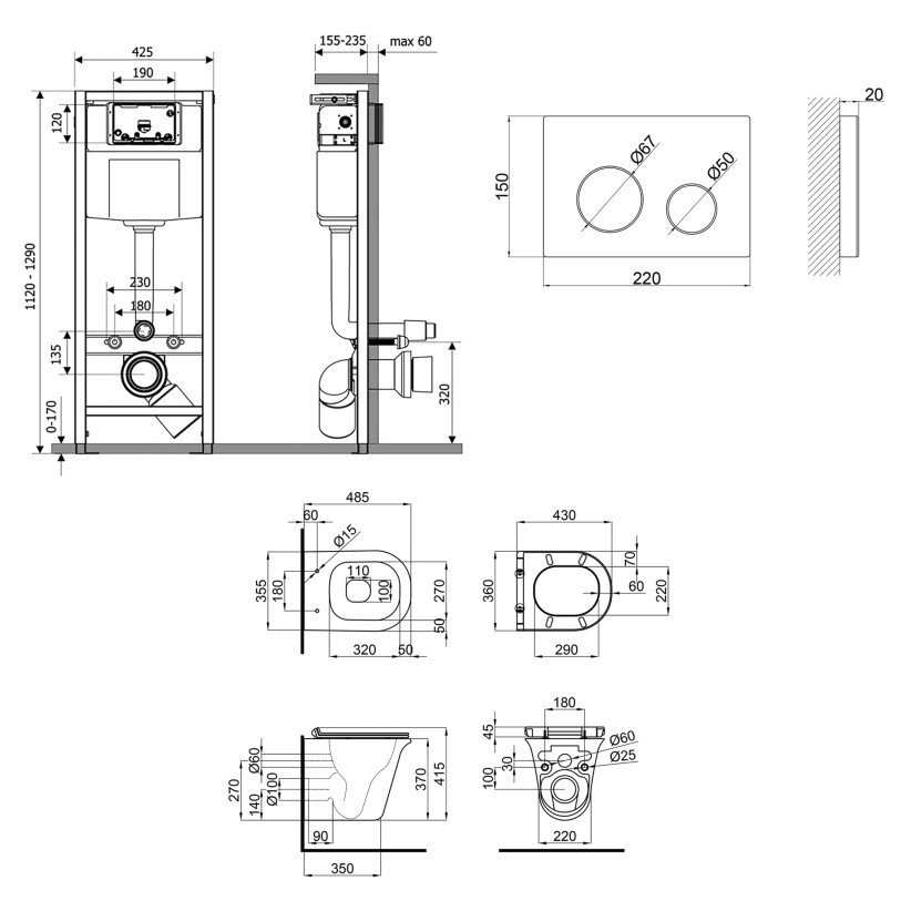 Набір Qtap інсталяція 4 в 1 з панеллю змиву Nest (QT0133M425 + QT0111M11V1114W) + унітаз з сидінням Virgo QT1833051ERW