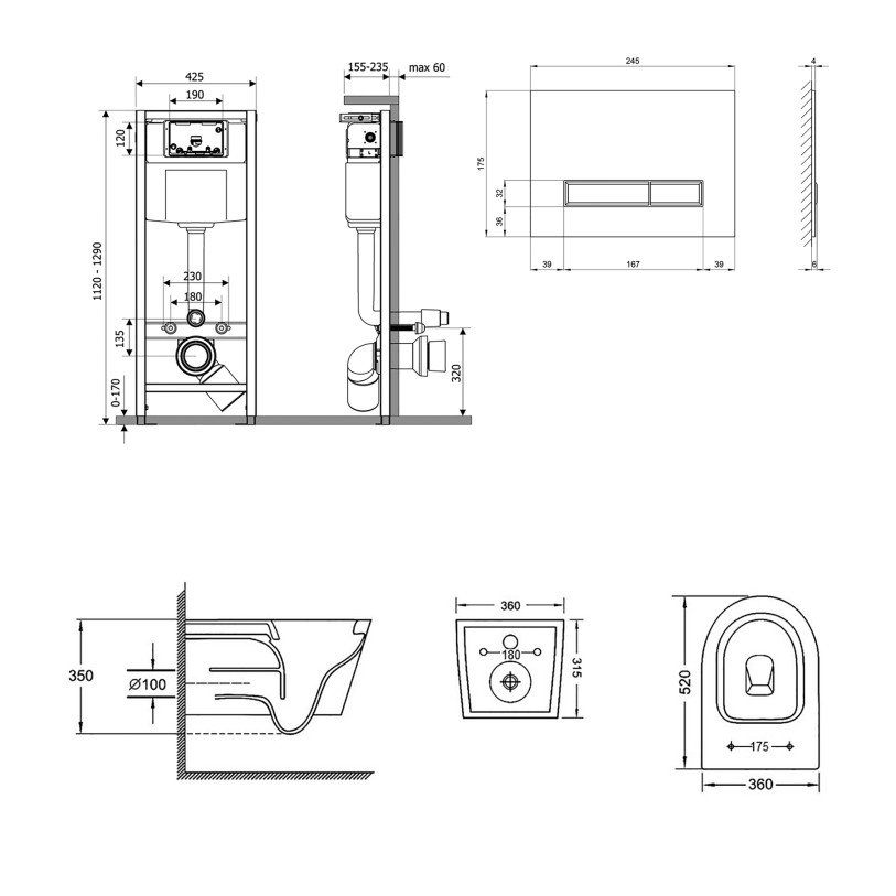 Набір Qtap інсталяція 4 в 1 з панеллю змиву Nest (QT0133M425 + QT0111V1105GW) + унітаз з сидінням Jay QT07335176W