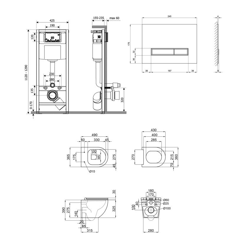 Набір Qtap інсталяція 4 в 1 з панеллю змиву Nest (QT0133M425 + QT0111V1105GW) + унітаз з сидінням Robin QT1333046ENRW