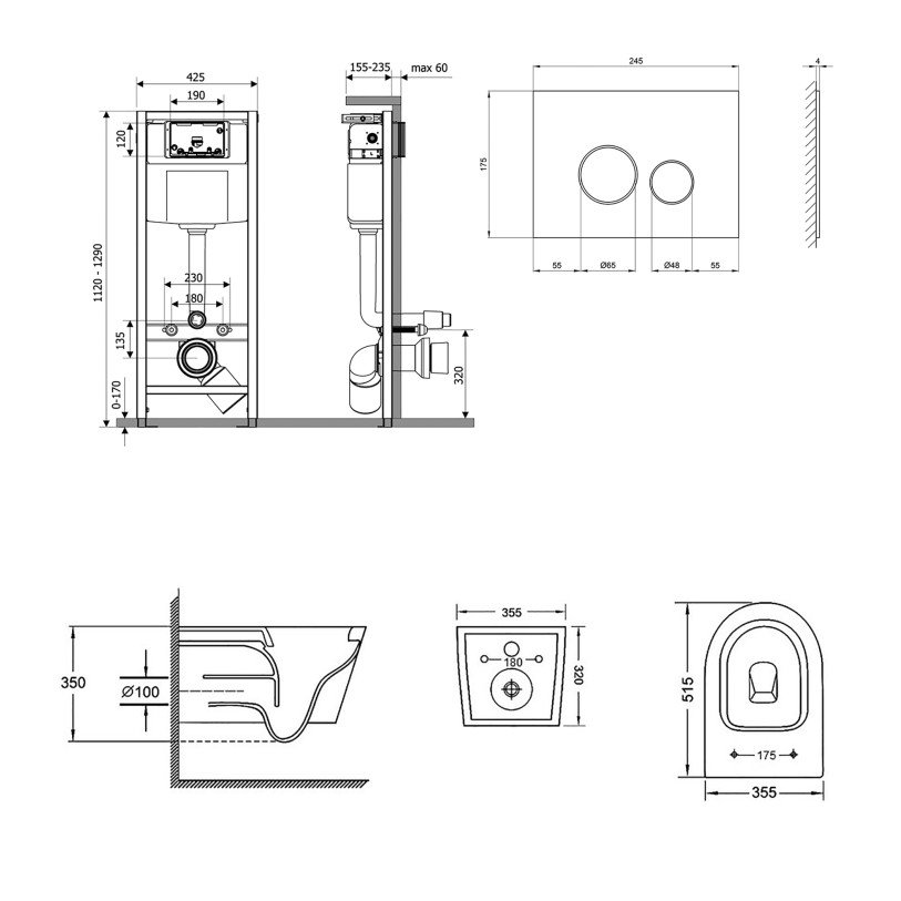 Набір Qtap інсталяція 4 в 1 з панеллю змиву Nest (QT0133M425 + QT0111V1164GW) + унітаз з сидінням Swan QT16335178W