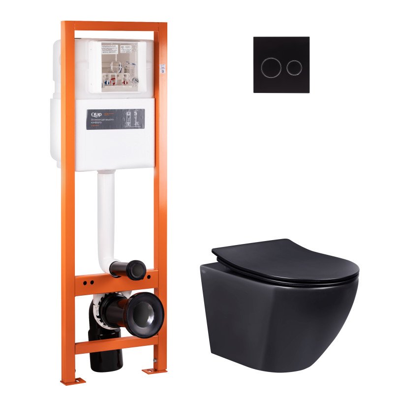 Набір Qtap інсталяція 4 в 1 з панеллю змиву Nest (QT0233M370 + QT0211P01V1178MB) + унітаз з сидінням Robin QT1333046ERMB