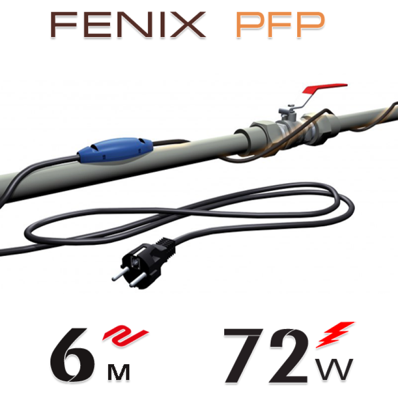 Двожильний нагрівальний кабель Fenix PFP має приєднаний провід живлення довжиною 1,5 м і вилку для підключення в розетку із заземленням. На кінці кабелю передбачений біметалічний термостат, що регулює режим обігріву трубопроводу. Включення обігріву відбувається при температурі труби 3 ° C, а після нагрівання до 10 ° C харчування кабелю відключається, поки труба не охолоне до нижньої межі.