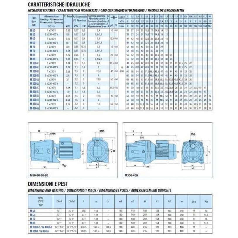 Серія М включає в себе зовнішні самовсмоктуючі електронасоси відцентрового типу з одним робочим колесом. Ефект самовсмоктування досягається завдяки ежектору (принцип Вентурі), встановленому в корпусі насоса.