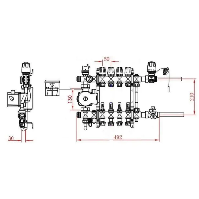 Колектори для теплої підлоги - це резервуар, який оснащений комплектом технологічних штуцерів. Вони використовуються для подачі та / або відведення теплоносія. До них приєднуються всі комунікації - радіатори, а кількість теплоносія, в даному випадку, регулюється запірною арматурою. Переміщення водяного теплоносія забезпечується за допомогою помпи. Вся ця система оснащена краном (з його допомогою здійснюють злив води при ремонті) і пристроєм для видалення повітря (для видалення повітряних пробок із системи).