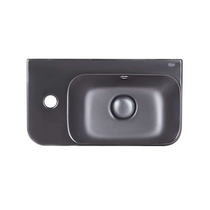 Раковина Qtap Tern 450х260х155 Matt black QT17115117LMB має ергономічну форму, виконана з якісної кераміки чорного кольору з отворами для змішувача і переливу. Вона встановлюється на стіну за допомогою кріпильних деталей, які входять в комплектацію. На боковій поверхні є можливість розмістити аксесуари. Завдяки донному клапану, який входить до комплектації, є можливість наповнювати раковину водою. Сифон для раковини купується окремо.