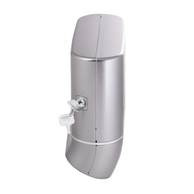 Держатель для бумажных полотенец Qtap Drzak na Rucniky DR600SP незаменим для применения в общественных местах и в быту для поддержания гигиены. Он изготовлен из пластика хромированного цвета. Загрузка листовых салфеток осуществляется непосредственно в корпус, который открывается при помощи ключа. Благодаря компактным габаритным размерам держатель можно разместить в любом удобном месте. Изделие крепится на стену шурупами, которые входят в комплект.