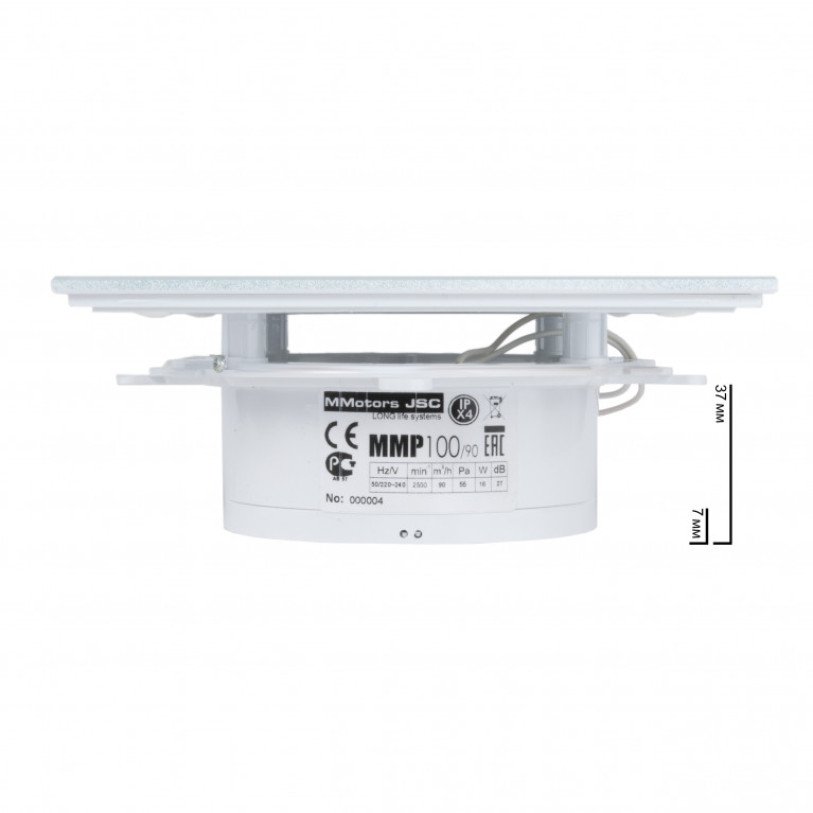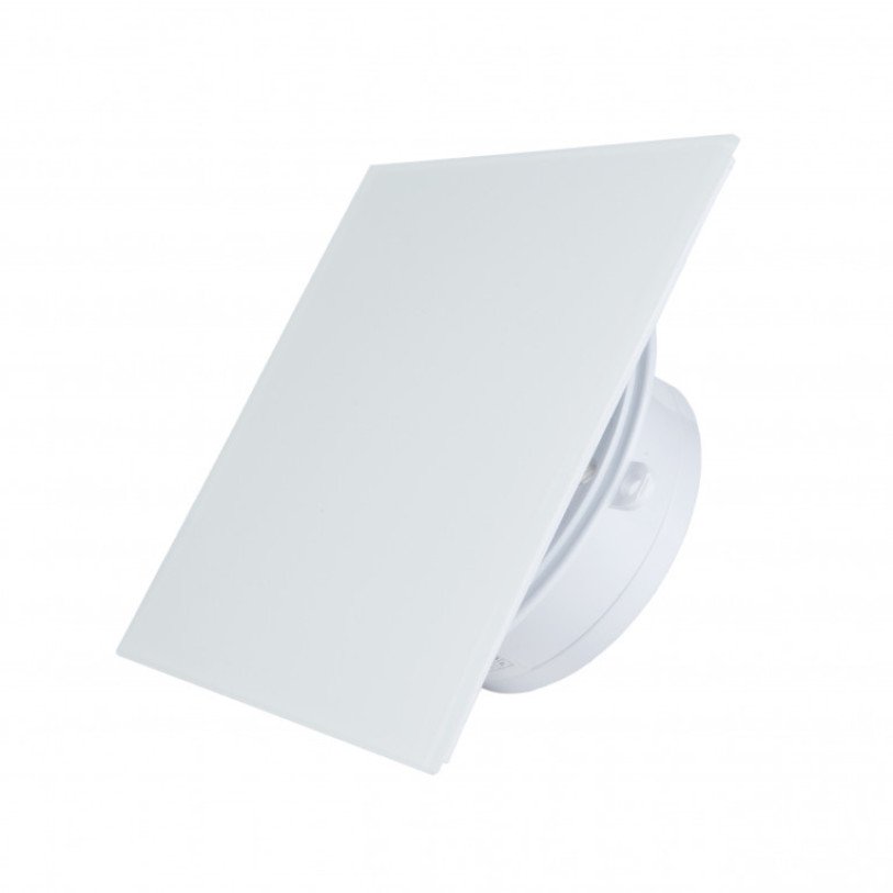 Дизайнерский сверхтонкий вытяжной вентилятор для ванной MMP 100, 90 м³/ч, стекло, белый матовый, с клапан