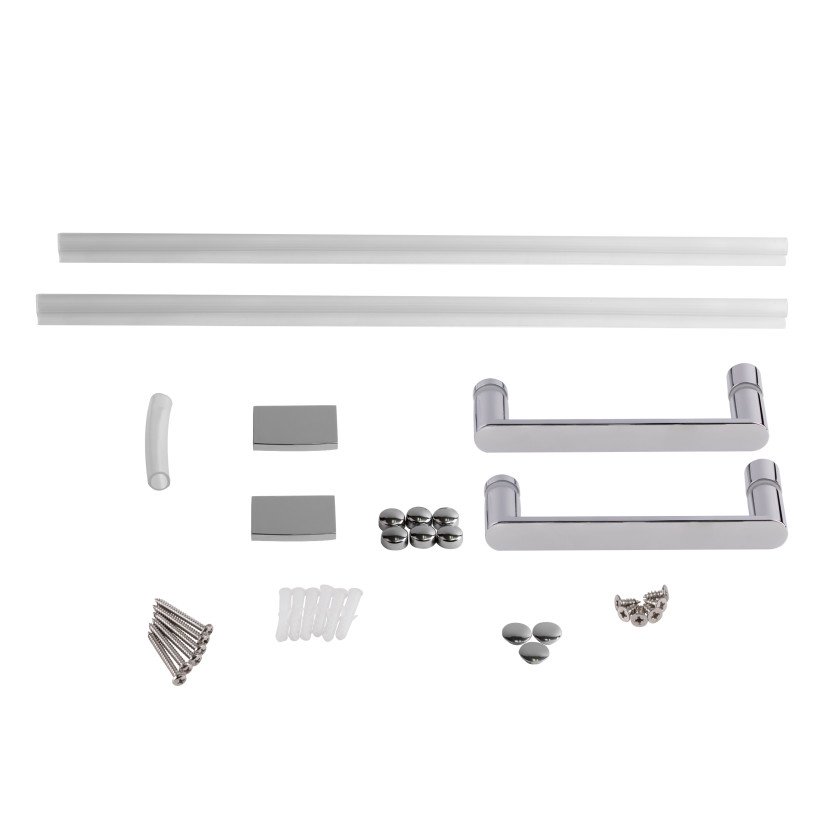 | Комплектация | Предустановленные стеклянные двери с профилем, ручки, набор уплотнителей, расширительные профили, заглушки, комплект крепежей. |