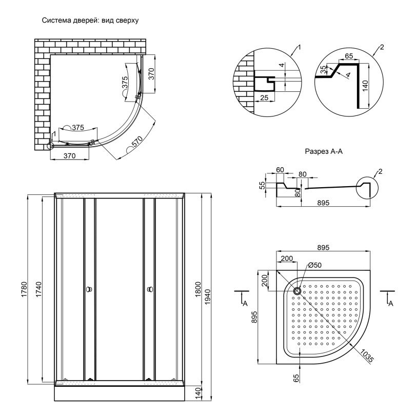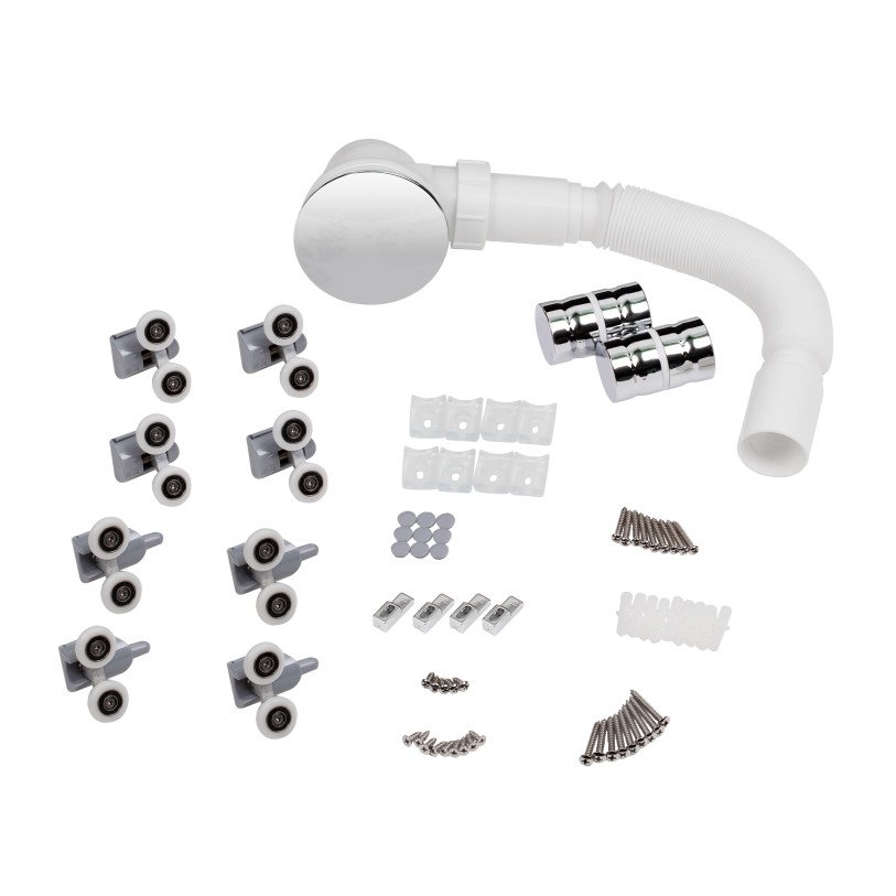 | Комплектация | Поддон, сифон, двойные ролики, ручки, комплект крепежей, глухое стекло, стеклянные двери, переходник 32/50 мм, профиль. |