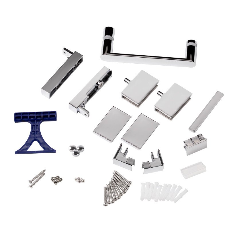 | Комплектация | Петли, кронштейн, боковая панель, стеклянная дверь, ручка, нижний борт, комплект крепежей, набор уплотнителей, боковые профили, расширительные профили, заглушки, поддон, ножки, сифон с гидрозатвором. |