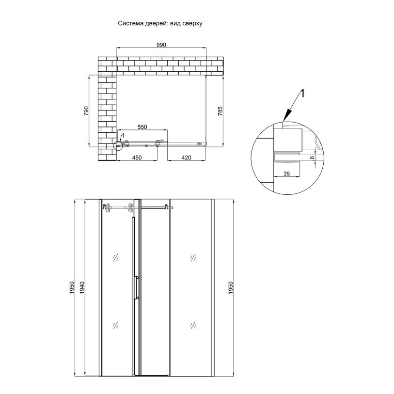 | Комплектация | Верхний профиль, металлические ролики, боковая панель, глухое стекло, стеклянная дверь, нижний борт, комплект крепежей, ручка, набор уплотнителей, заглушки. |