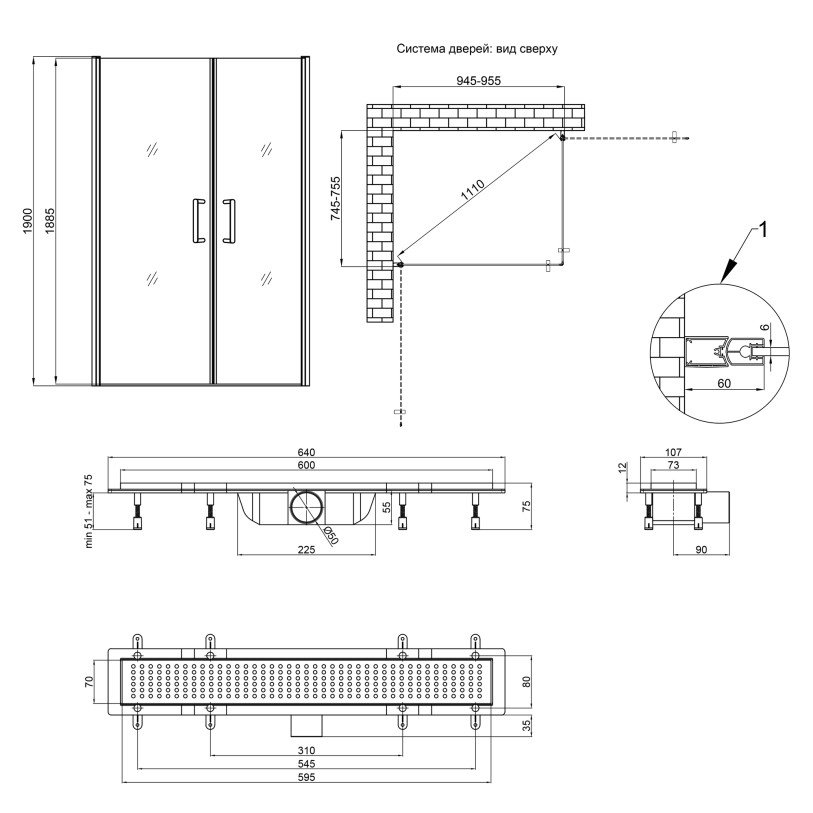 | Комплектация | Нижние борта, боковые профили, расширительные профили, накладки, комплект крепежей, заглушки, ручки, набор уплотнителей, стеклянные двери, трап с решеткой, ножки, уплотнительная лента. |