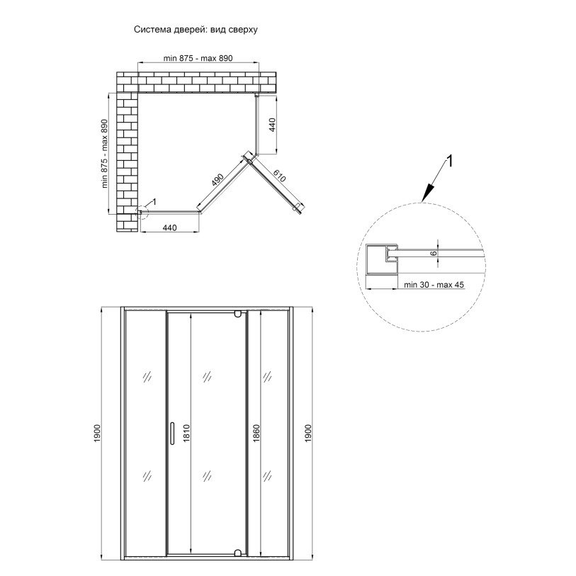 | Комплектация | Боковые профили, набор уплотнителей, ручка, заглушка, комплект крепежей, глухие стекла, стеклянная дверь в профиле с петлями, расширительные профили. |