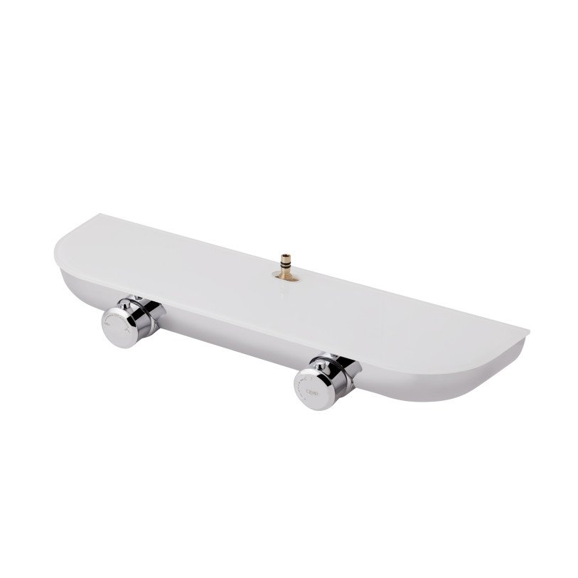 Душевая система Qtap Sloup 57106VGNW - эстетическое и практическое решение в одном изделии. Она изготовлена из качественной латуни и прочного пластика, которые не подвержены коррозии. Система выполнена в белом цвете с глянцевой поверхностью, оборудована стильным термостатическим смесителем-полкой из закаленного стекла, а так же двумя видами душа - ручным и верхним. Переключение между потребителями осуществляется при помощи поворота вентиля.