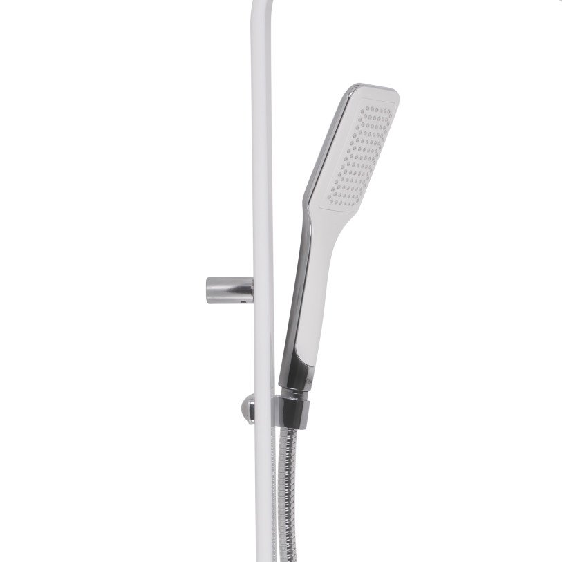 Душевая система Qtap Sloup 57106VKNW - эстетическое и практическое решение в одном изделии. Она изготовлена из качественной латуни и прочного пластика, которые не подвержены коррозии. Система выполнена в белом цвете с глянцевой поверхностью, оборудована стильным смесителем-полкой из закаленного стекла, а так же двумя видами душа - ручным и верхним. Переключение между потребителями осуществляется при помощи кнопок на корпусе смесителя. Изделие станет ярким акцентом в интерьере.