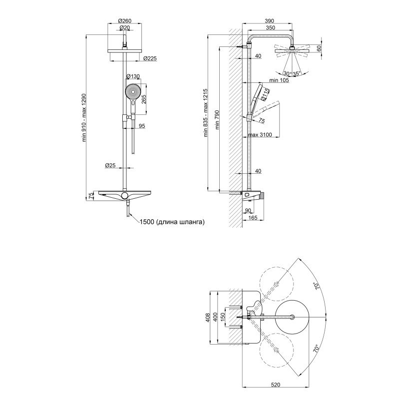 | Длина кронштейна для верхнего душа, мм. | 350 |