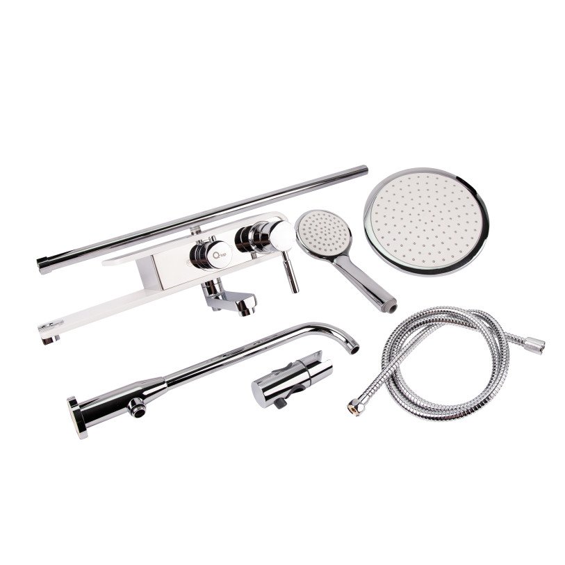 Душевая система Qtap WHI 1109 обеспечит максимально комфортный прием душа. Она состоит из телескопической душевой стойки с фиксированным верхним и гибким ручным душем и смесителя с удобной встроенной полочкой. Длительный срок службы обеспечивают не подверженная воздействию ржавчины, долговечная, износостойкая латунь и прочный пластик, из которых изготовлено изделие.