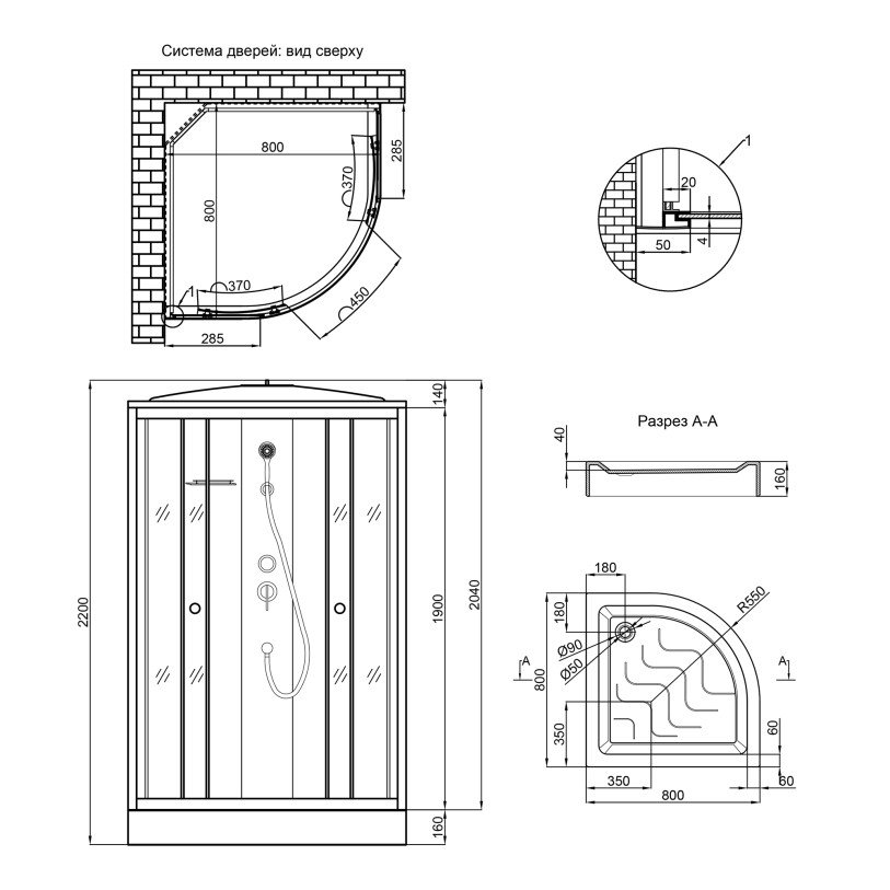 Душевой бокс Lidz Tani SB80x80.SAT.LOW.FR с поддон Kupala